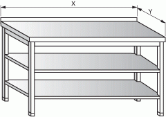 1) Pracovní stůl STANDARD nerezový nábytek gastro > Stůl pracovní s dvěma policemi nerez gastro > Hloubka 600mm nerez gastro